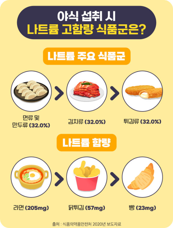야식 섭취 시 나트륨 함량을 줄이기 위해서는?