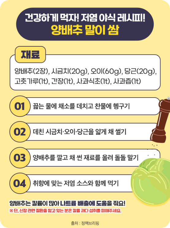 양배추는 칼륨이 많아 나트륨 배풀에 도움을 줘요!