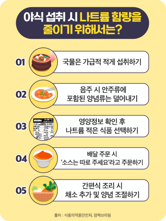 야식 섭취 시 나트륨 함량을 줄이기 위해서는?