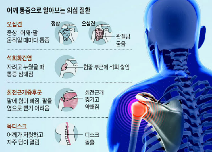 - 어깨 통증: 밤에 더욱 심해지는 경우가 많습니다.