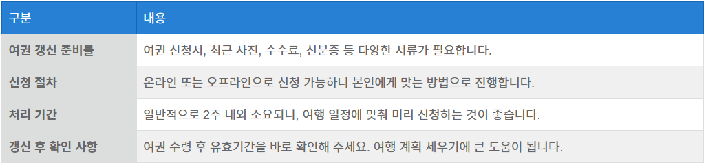 여권 갱신 시 필요한 준비물을 한눈에 정리했습니다.