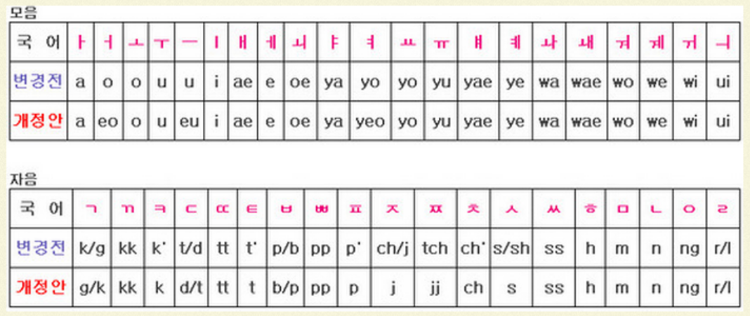 현 로마자표기법과 과거 표기법