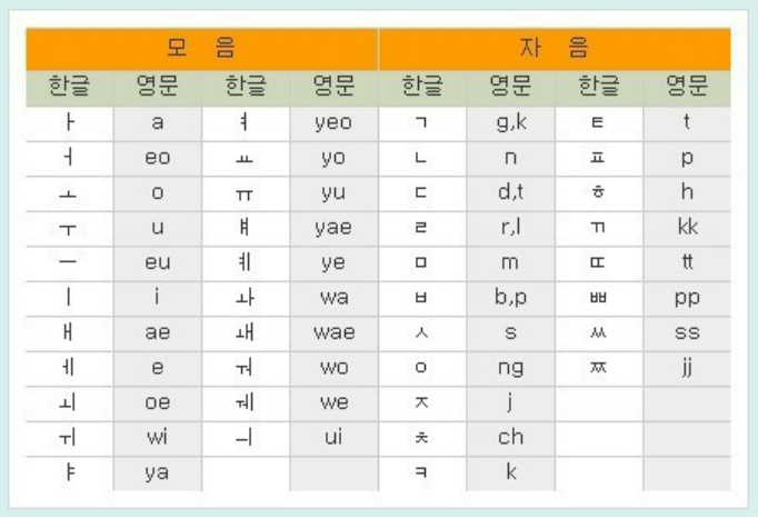한국어의 로마자 표기법은 발음을 기준으로 하며, 주로 문화체육관광부에서 제정한 표준에 따릅니다. 'ㄱ'은 'g'로, 'ㅅ'은 's'로 표기하며, 받침에 따라 달라질 수 있습니다. 예를 들어, '서울'은 'Seoul', '부산'은 'Busan'으로 표기합니다.