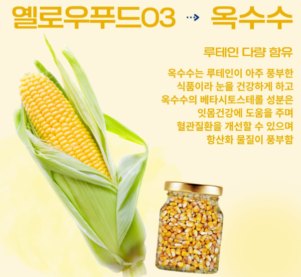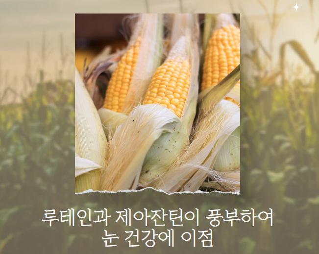 옥수수에는 루테인과 제아잔틴이 풍부하여 눈 건강에 이점을 제공합니다.
