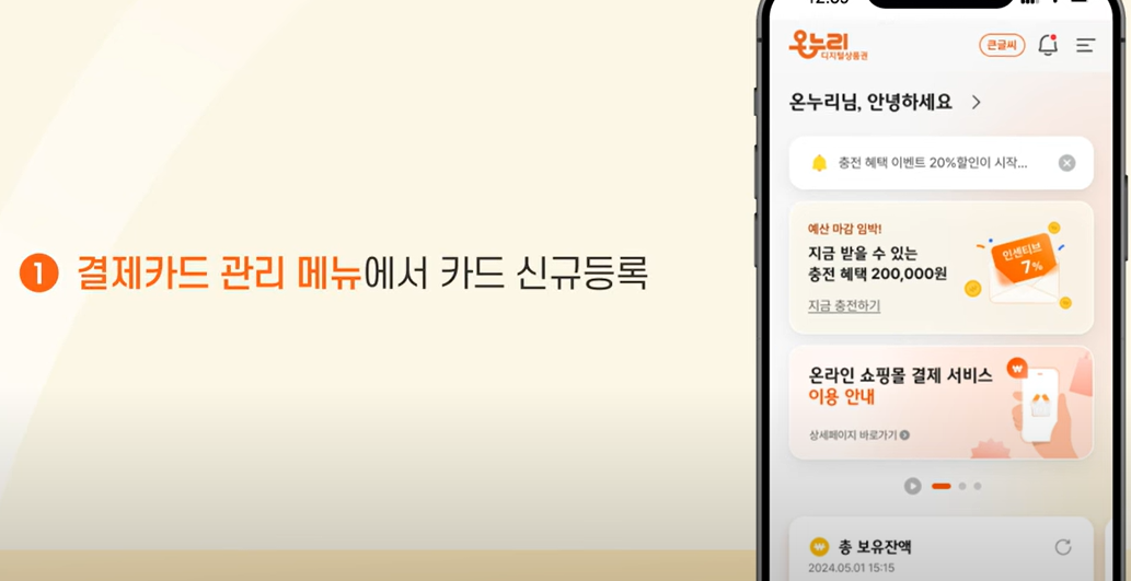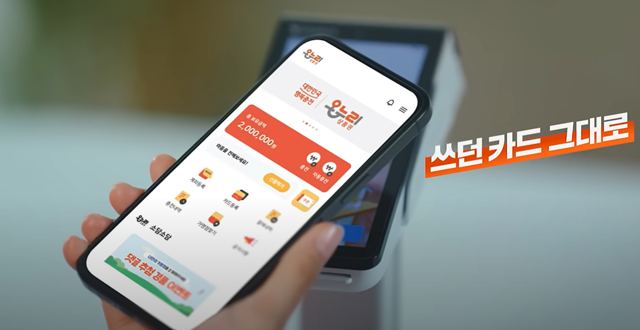 - 카드형 온누리상품권: 앱에서 충전 후, 등록된 카드로 결제 가능