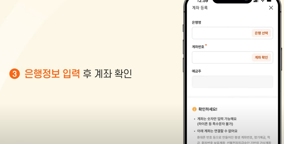 - 안내에 따라 본인 명의 계좌 등록 (최대 10개 등록 가능)