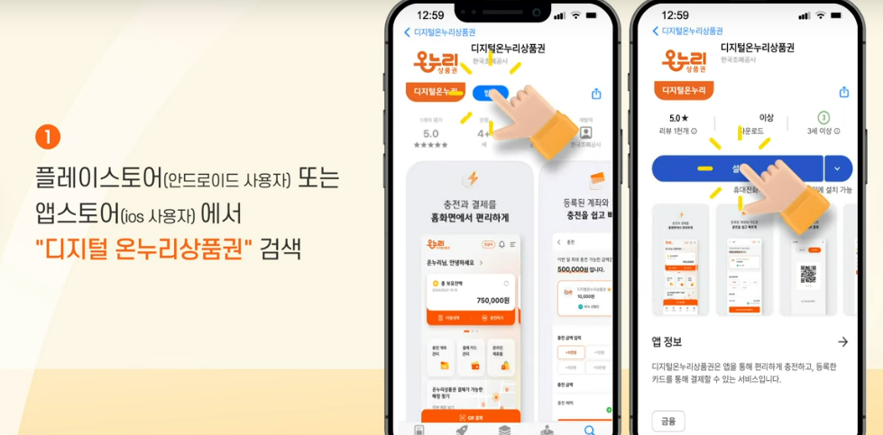 디지털 온누리상품권 구글 플레이스토어/앱스토어 다운로드 바로가기