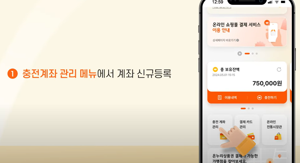 - 앱 홈 화면에서 '충전계좌 관리' 선택