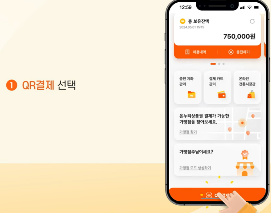- 모바일 온누리상품권: 앱에서 충전 후, QR 코드로 결제 가능