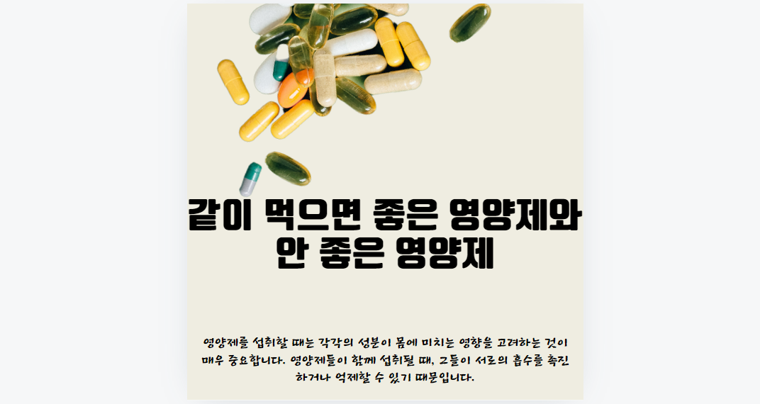 영양제를 섭취할 때는 각각의 성분이 몸에 미치는 영향을 고려하는 것이 매우 중요합니다. 영양제들이 함께 섭취될 때, 그들이 서로의 흡수를 촉진하거나 억제할 수 있기 때문입니다.