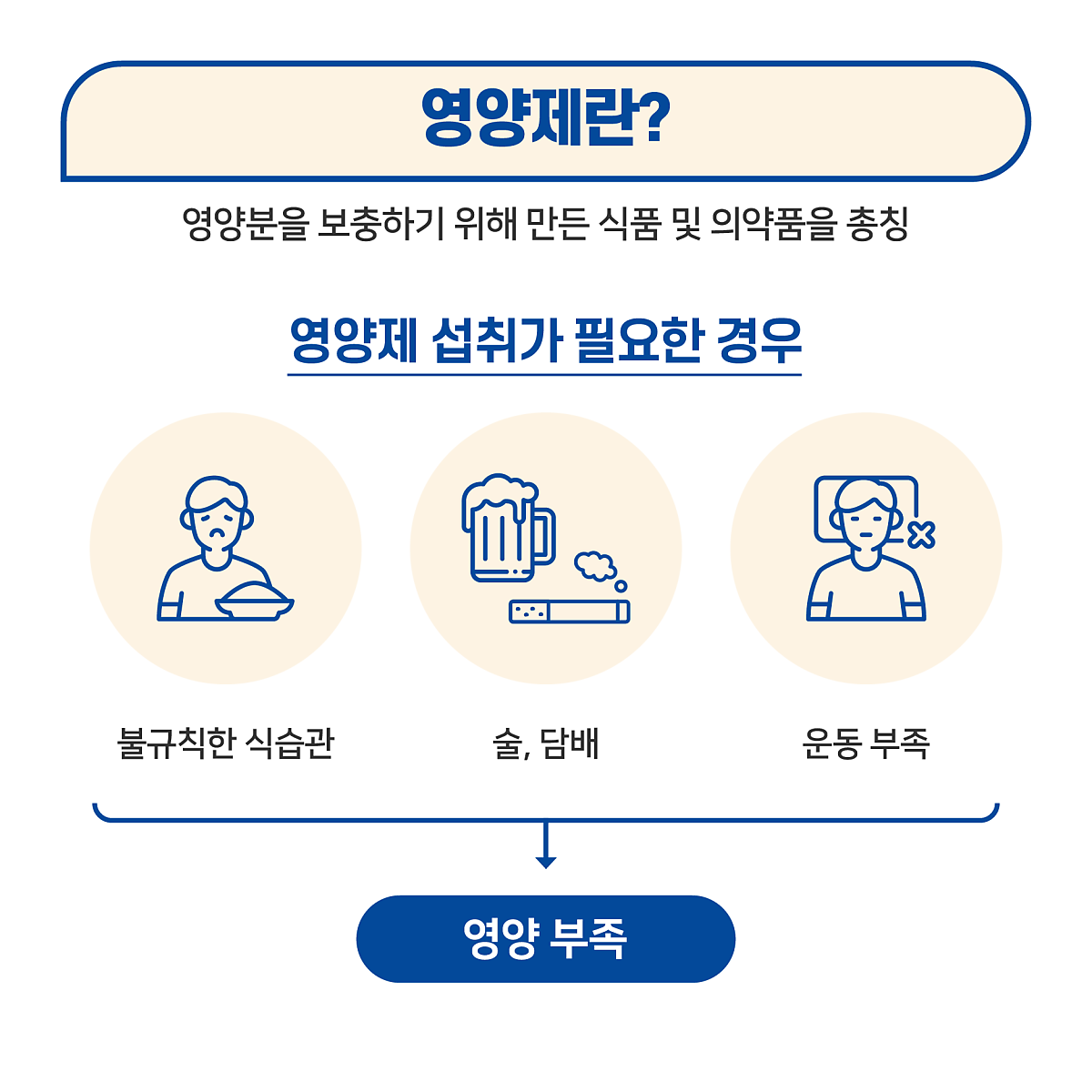 - 영양 보충: 식단에서 부족할 수 있는 영양소를 보충해 주는 역할을 합니다. 예를 들어, 비타민 D는 햇볕을 충분히 쬐지 않으면 부족할 수 있으며, 철분이나 칼슘도 특정 조건에서 식사만으로는 부족할 수 있습니다.