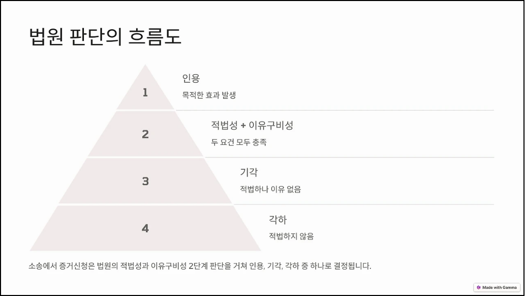 👉 기각은 소송 요건을 충족했지만 청구 내용이 인정되지 않는 것이고, 각하는 소송 요건 자체가 충족되지 않아 본안 심리 없이 종료되는 것입니다.