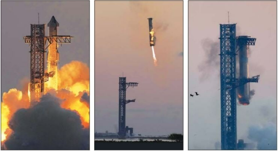 스페이스X는 이번 시험 비행에서 첫 번째로 '메카질라'를 이용한 착륙 방식을 도입했습니다. 발사 후 약 3분이 지나 슈퍼헤리 로켓은 상단 우주선과 분리되어 하강을 시작했고, 7분 후에 발사탑으로 돌아와 수직으로 하강하면서 엔진을 재점화하여 속도를 줄였습니다. 두 개의 로봇팔이 로켓의 상단부를 안정적으로 잡아주는 모습은 마치 젓가락이 음식을 집는 듯한 인상을 주었습니다.
