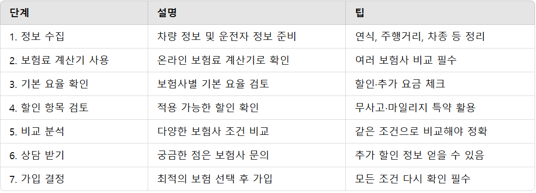 자동차 보험료 계산은 몇 가지 단계를 거치면 쉽게 진행할 수 있습니다.