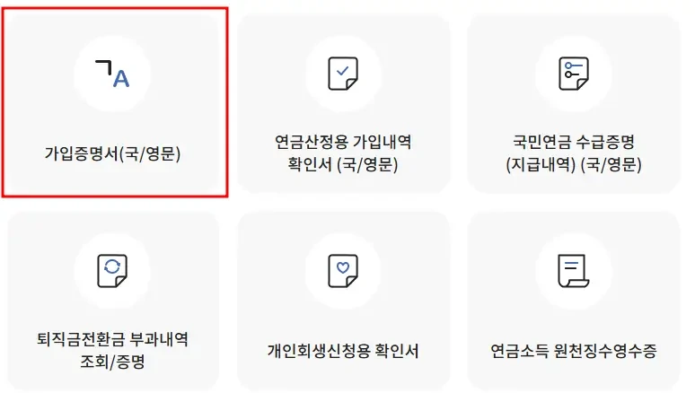 - ‘전자민원서비스’ → ‘가입증명서 발급’ 선택