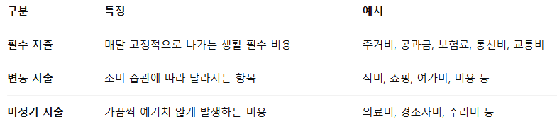 - 월 예산을 미리 정하세요. (예: 100만 원)