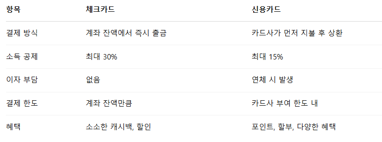 - 혜택 활용과 유동성 중시라면 → 신용카드