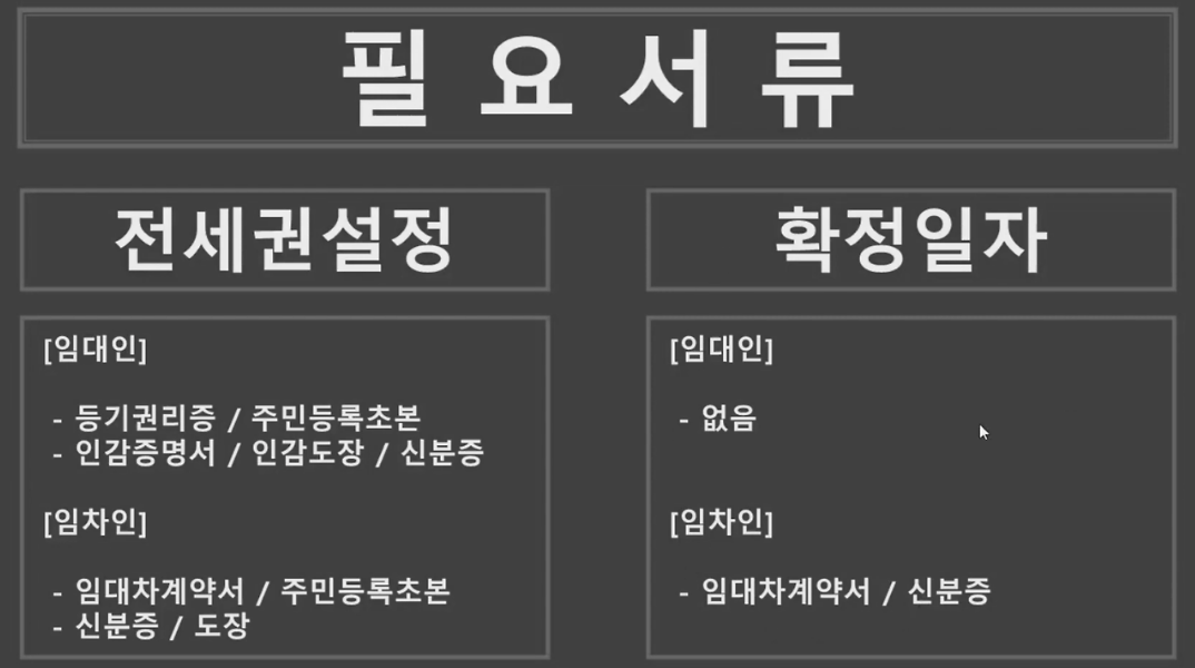 - 전세권 설정 등기는 집주인의 동의가 필요하며, 보증금 액수에 따라 등기비용이 다릅니다. 비용이 확정일자보다 더 비쌀 수 있지만, 그만큼 강력한 법적 효력을 가집니다.