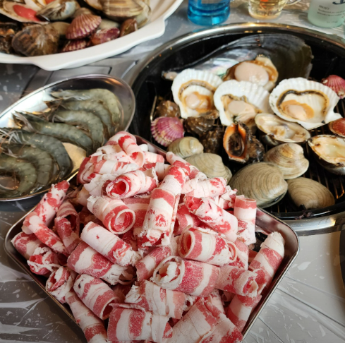 - 해산물 메뉴: 조개 외에도 새우, 문어, 오징어 등 다양한 해산물이 함께 제공되어 해산물의 풍미를 만끽할 수 있습니다.