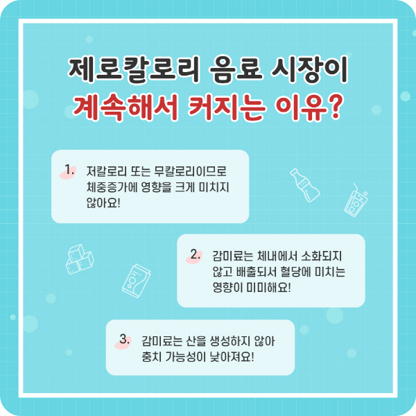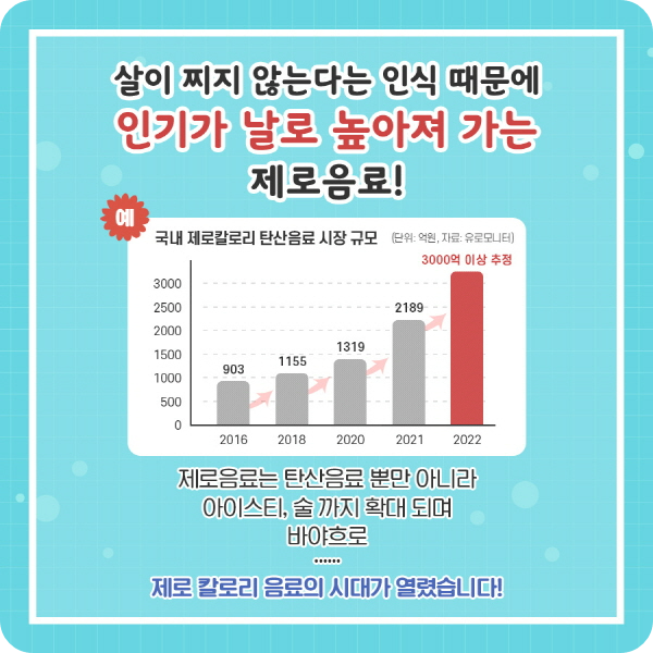살이 찌지 않는다는 인식 때문에 인기가 날로 높아져 가는 제로음료!