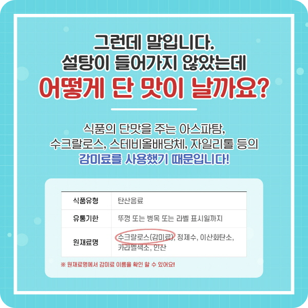 원재료명의 감미료를 꼭 확인해보시고 맛과 건강 모두 안전하게 지키세요!