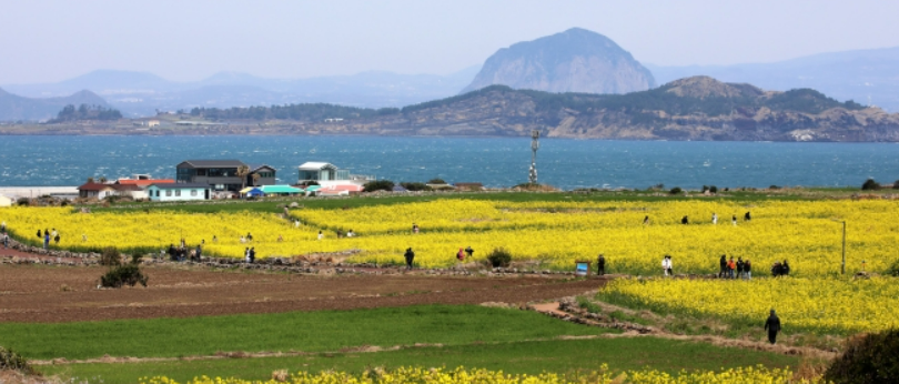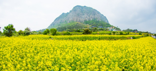 제주도 곳곳에서 유채꽃을 볼 수 있지만, 산방산 인근 유채꽃밭은 특히 아름다운 풍경을 자랑합니다. 푸른 하늘과 산방산을 배경으로 펼쳐진 샛노란 유채꽃밭은 제주도의 봄을 온전히 느낄 수 있는 대표적인 명소입니다.