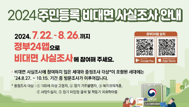 2024 주민등록 사실조사, 간편하게 비대면으로 참여하세요!