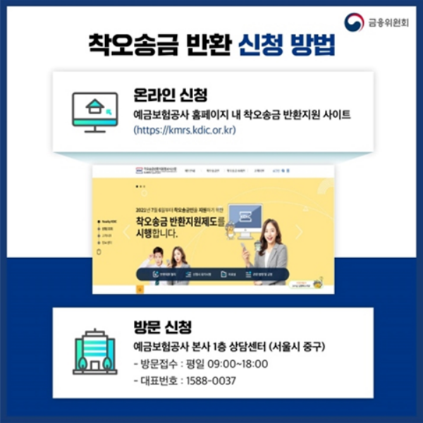 - 온라인: 예금보험공사 착오송금 반환지원 사이트 (kmrs.kdic.or.kr)