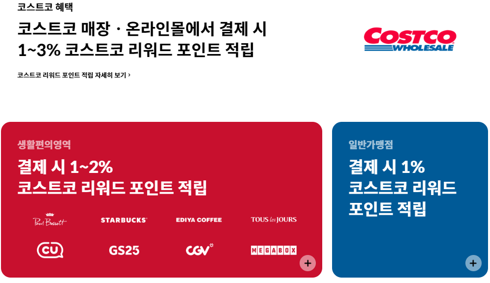 - 코스트코 매장 결제 시: 2% 기본 적립