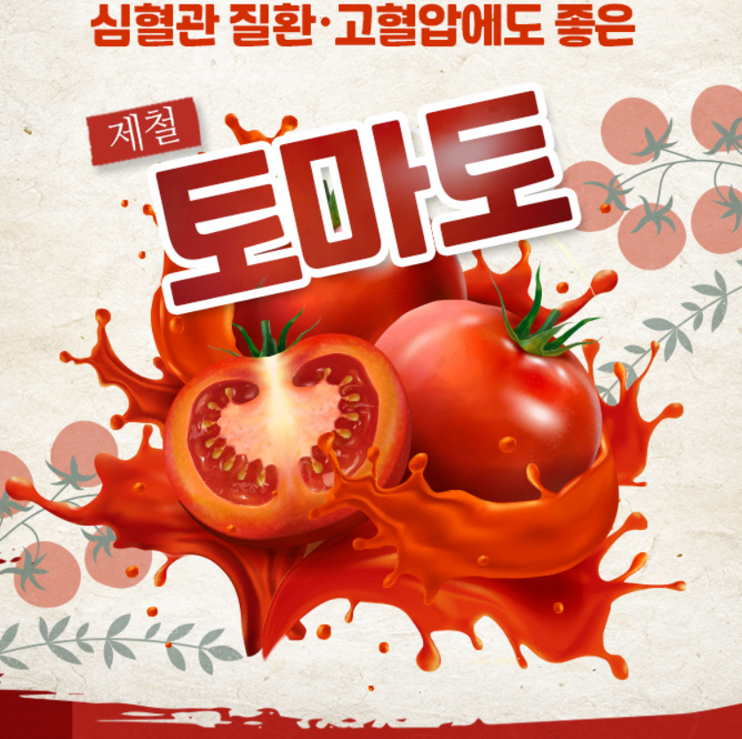 토마토는 혈관 건강을 유지하고 혈압 조절에 도움을 주는 칼륨과 루틴이 풍부합니다. 또한 나쁜 콜레스테롤(LDL)을 감소시키고 좋은 콜레스테롤(HDL)을 증가시키는 역할을 하는 라이코펜과 비타민 C 덕분에 심혈관 질환 예방에도 효과적입니다.