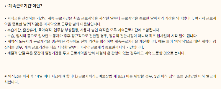 - 퇴직금은 1년 이상 근로한 모든 노동자에게 지급됩니다.