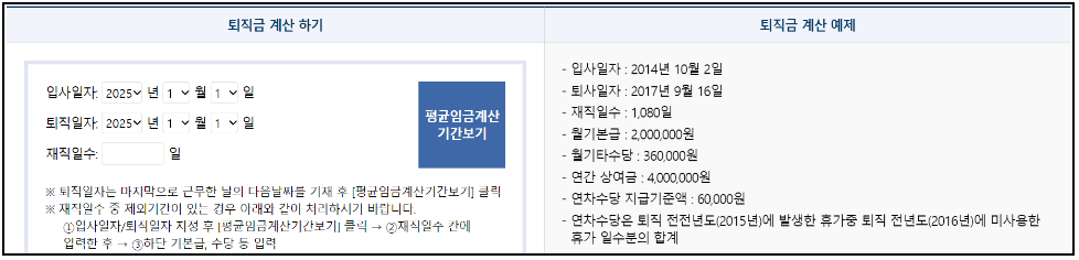 퇴직금 계산기의 사용법