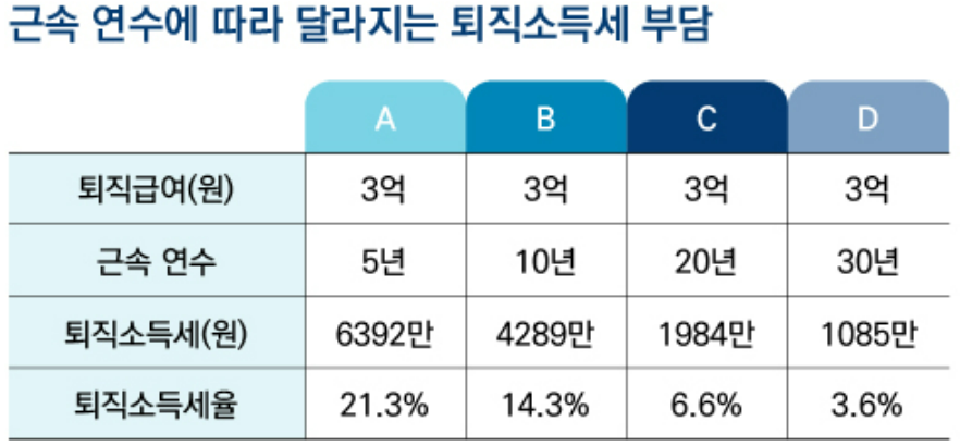 퇴직소득세, 근속연수에 따라 달라진다