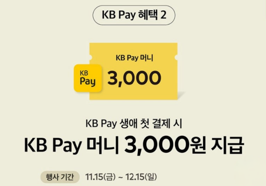 - KB페이 추가 할인: 11월 15일 ~ 11월 30일 (3,000원 할인) / 12월 1일 ~ 12월 15일 (1,500원 할인)