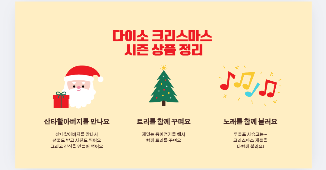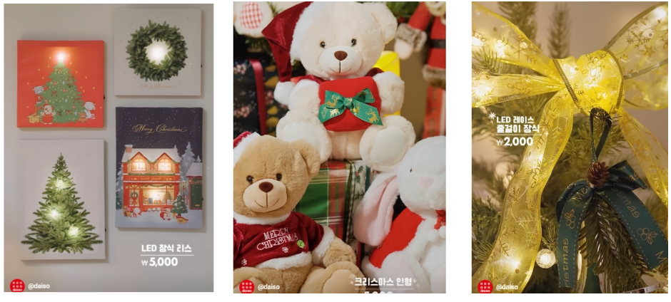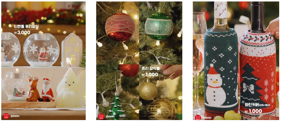 - 특징: 크리스마스 분위기를 제대로 느낄 수 있는 다양한 가성비 아이템