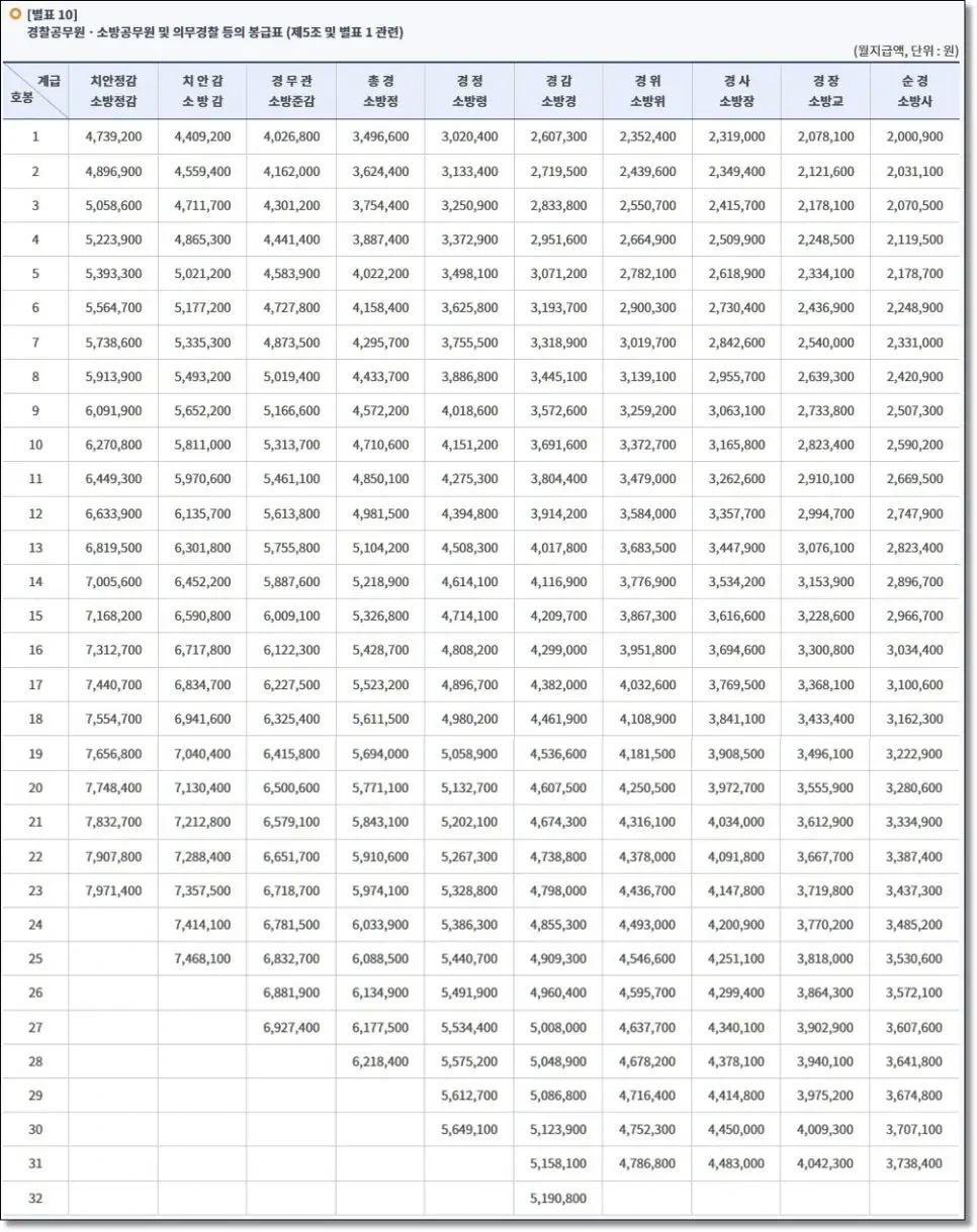 A: 봉급표는 매년 1월 1일부터 적용되며, 이는 공무원 전체에 동일하게 적용됩니다. - Q: 공무원 봉급표는 어디서 확인할 수 있나요?