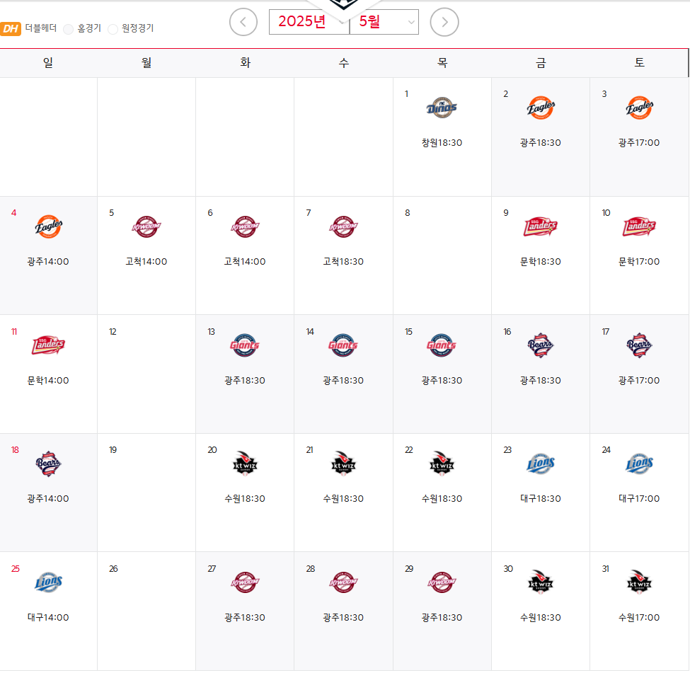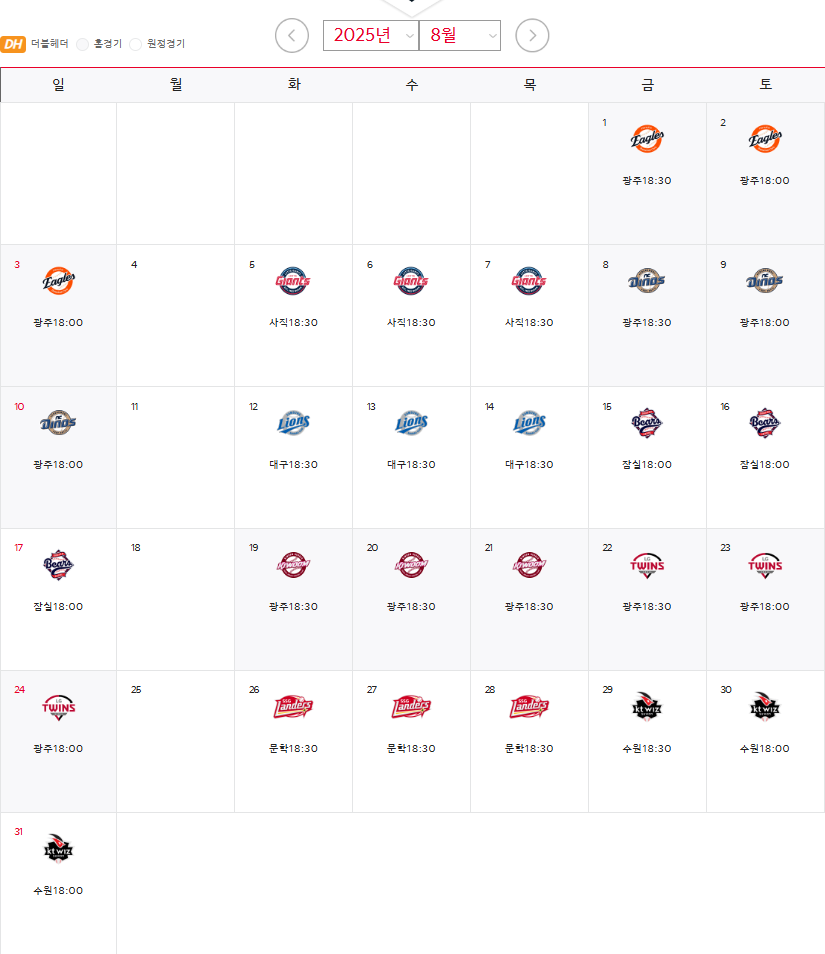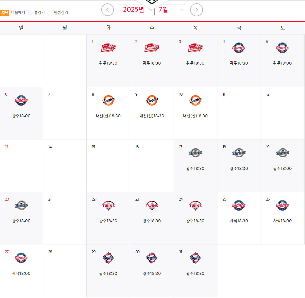 KIA타이거즈 경기일정
