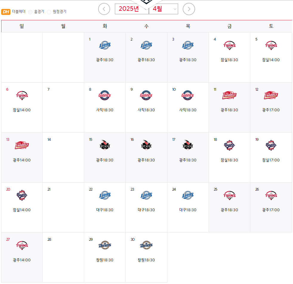 - 4월 1~3일: 삼성 라이온즈와의 홈 3연전