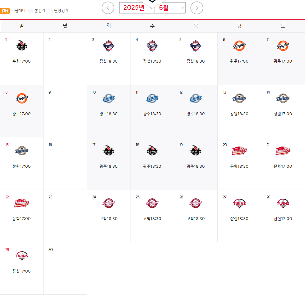 - 6월 10~12일: 삼성 라이온즈와의 홈 3연전