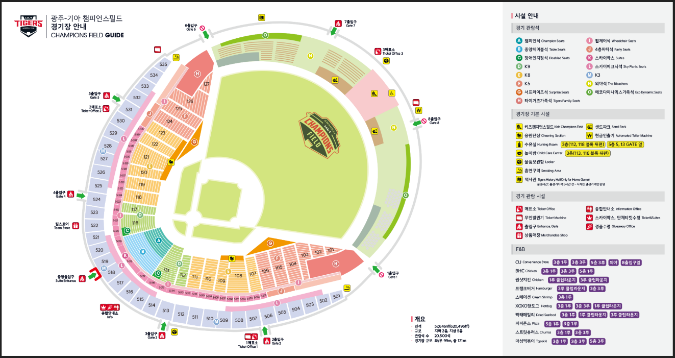 - 운영 시간: 경기 시작 2시간 30분 전 오픈 (주말 및 공휴일은 3시간 전)