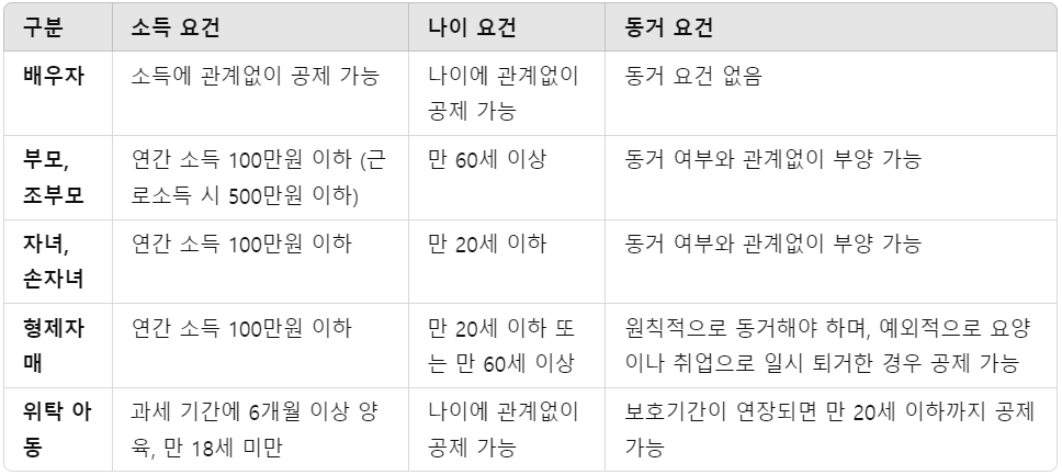 기본공제 대상자 요건