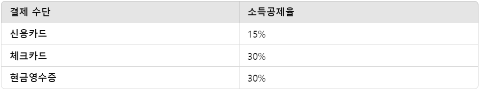 따라서 체크카드와 현금영수증을 사용하면 더 높은 비율의 소득공제를 받을 수 있습니다.
