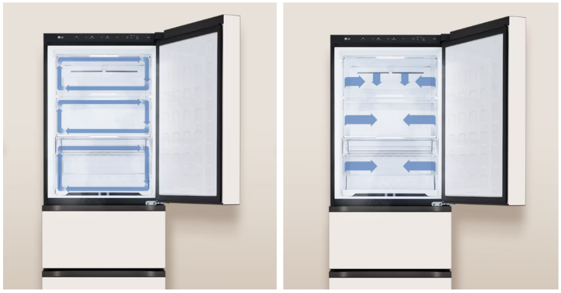 - 도어쿨링+: 냉장고 도어 쪽까지 냉기를 전달해 식품의 신선도를 유지합니다.
