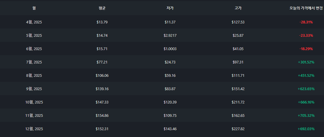 - 예상 평균 가격: $165.47 (현재 가격 대비 +490.12%)