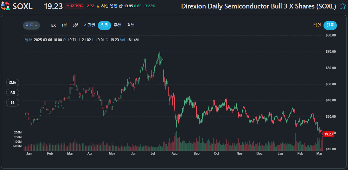 SOXL은 높은 성장성을 가진 ETF이지만, 레버리지 상품이므로 변동성이 큽니다.